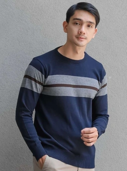 Grey Coffee Crewneck Stripe Blur Knitwear