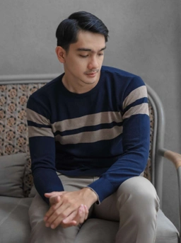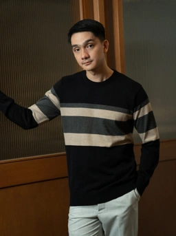 Grey Coffee Crewneck Stripe Blur Knitwear